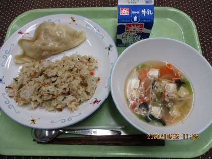 ・手作りジャンボ餃子 ・豆腐の中華スープ ・牛乳 9/30 算数の学習【6年生】