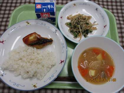 ・鯖のカレー焼き ・野菜のごま炒め ・さつま汁 ・牛乳 10/2 図工の学習【3年生】
