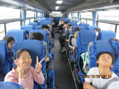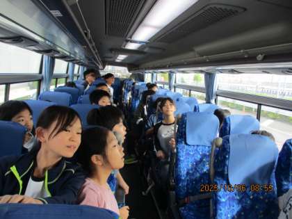 東京ドーム、皇居、東京タワー、六本木、スカイツリー 豊洲市場、レインボーブリッジ、羽田空港・・・ 右に左に「おーおー」「すごーい」「知ってるー」と 車窓からの景色を楽しんでいます。 バスレクさんの企画も盛り上がっています。