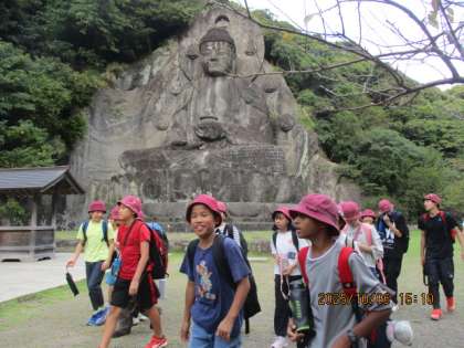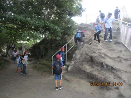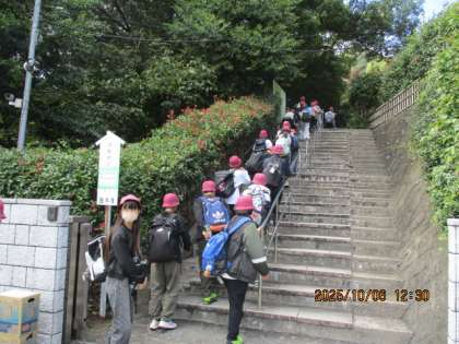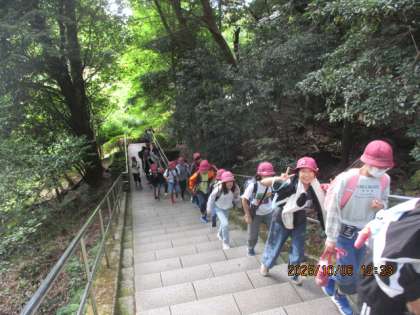 班ごとに協力して 各チェックポイントのミッションをクリアしながら ゴールを目指します! 結構ハードな坂道と階段ですが 友達と声を掛け合いながら頑張っています。 仲間との絆が、しっかりと深まっているようです。