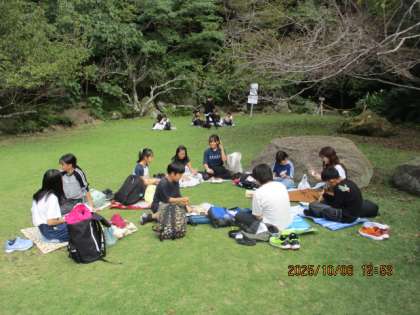 クラスごとに集合写真を撮って 楽しみにしているお弁当の時間です。