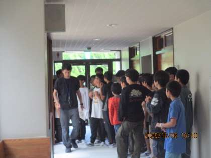 開校式の態度が大変立派です。 さすが八坂小学校の6年生。 宿舎の方々にも元気よく気持ちの良い挨拶ができています。 部屋に入ってすぐに避難経路などの確認を済ませ この後、入浴の時間です。