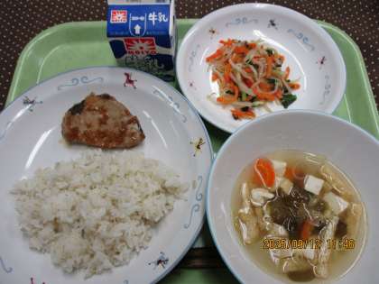 ・鶏肉と生揚げの煮物 ・野菜のからし和え ・牛乳 9月9日
