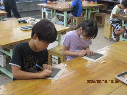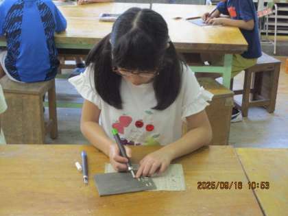 今日から取り組むようです。 今回は、木版画で彫刻刀を使って作品を作ります。 「版画って何だろう?」という 子供たちの疑問からスタートし 早速、彫刻刀の練習をしています。 安全に気を付けながら、どの子も真剣に彫刻刀の使い方を学んでいます。