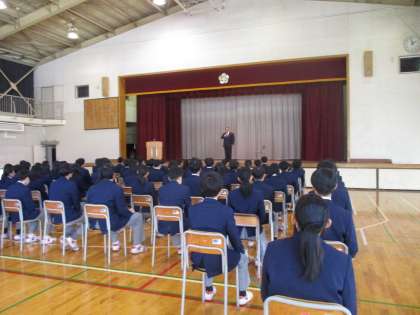 11月19日水曜日に校長先生から、進路に向けてのお話がありました。礼儀や面接での所作等の大切さを教えていただきました。すべての行動には意味があり、なぜその行動がよいのかを丁寧にお話ししていただきました。