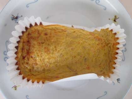 ◆切り干し大根入り卵焼き: 刻んだ切り干し大根、豚肉、玉ねぎ、にんじんなどを炒め、たまごやかつお出汁を加えて、カップで焼き上げました。切り干し大根の食感とたまごのまろやかな風味が味わえます。