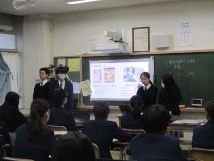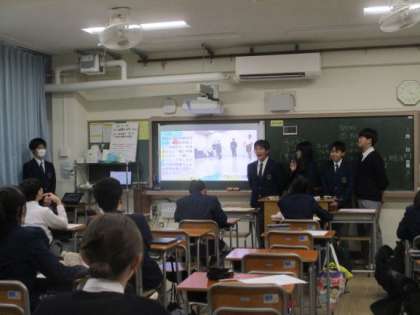 今週から職場体験事後学習の発表を始めました。各班、自分たちの体験を分かりやすく工夫して発表していました。今回作成した資料は3月に行う作品展ウィークで展示する予定です。