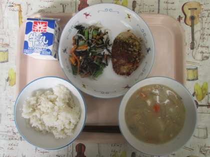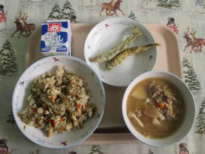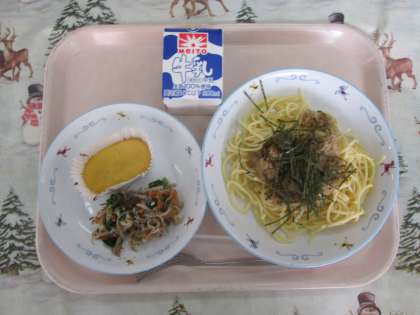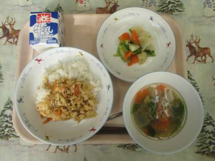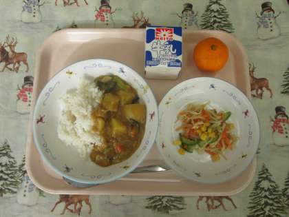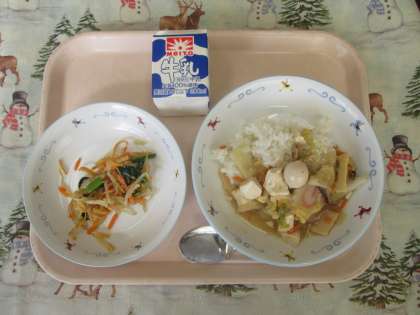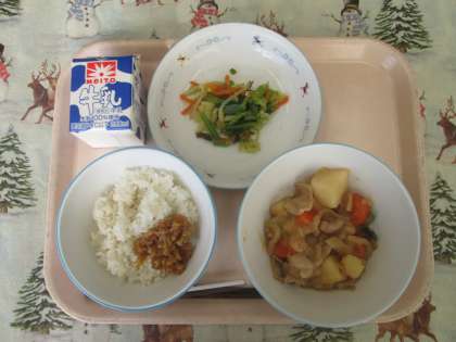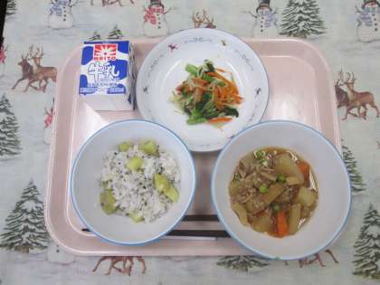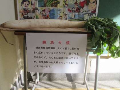 今日は、練馬区で収穫された大根を使用した一斉給食の日です。毎年12月の第一日曜日は、練馬大根の引っこ抜き大会が開催され、そこで採れた大根を使用しています。