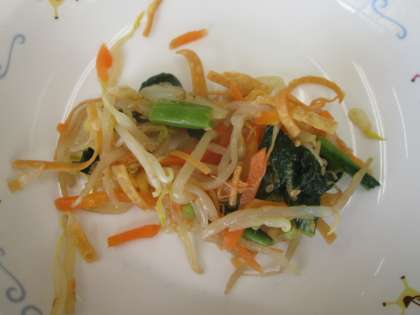 ◆野菜のごま酢和え: 小松菜、人参、もやしなどの野菜の食感に、ごま油やお酢の香りがさわやかなサラダです。