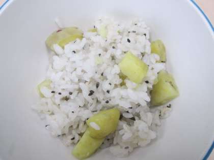 ◆さつまいもご飯: お米と麦に、さつまいも、塩、酒などを加えて炊きあげました。最後にごまを加えています。さつまいもの甘みと食感を楽しみながら、ごまの香りが口の中にひろがります。