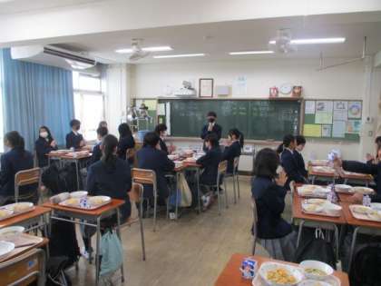 11月に衛生委員会による食uickキャンペーンが行われ、給食準備にかかる時間が少し短くなってきました。12月8日からは生徒会ビンゴが始まり、ビンゴ達成のためには、12時50分までにいただきますをする必要があります。ゆっくり食べられると、給食もよりおいしく感じます。当番だけでなく、みんなで協力して準備を進めていきましょう。
