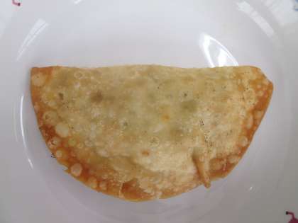◆大根入り餃子: 豚のひき肉、豆腐、調味料をよく混ぜ、餃子の皮でつつみ、油で揚げました。パリパリの皮の食感を楽しみながら、にんにくやみその香りが効いた具材のうま味が味わえます。