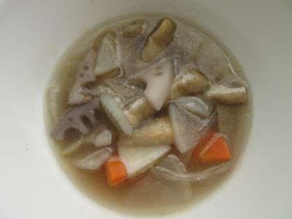 ◆たぬき汁: 精進料理の一種で、たぬきの肉の代わりに、こんにゃくを使ったと言われています。かつお節から出汁をとり、こんにゃくの他に、油揚げ、大根、人参、里芋、れんこんなどが入っています。こんにゃくの食感と野菜の甘みが味わえるお汁です。