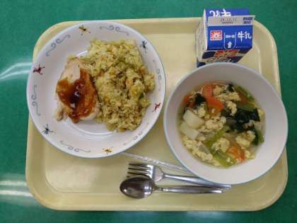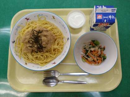 大根の葉サラダ 牛乳みかんゼリー 627キロカロリー 昨日は練馬区の畑で「練馬だいこん引っこ抜き大会」が開催されました。今日はその大会で抜かれたたくさんの練馬だいこんを、練馬区の学校給食に使用しています。練馬だいこんはとても長くて真ん中が太いので抜くのが大変です。練馬スパゲッティは大根おろしをたっぷりと使った練馬の定番メニューです。 【4年生】学習発表会に向けて