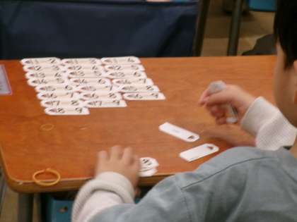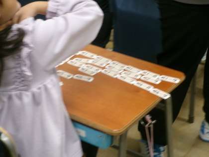 ひかれる数が同じものを順番に並べる子、答えが同じになるものを並べる子、いろいろなルールで並べましたね。