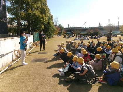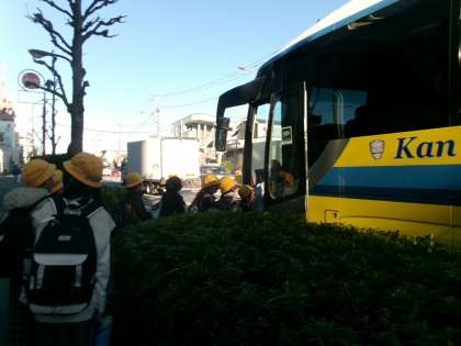 4年生はいつもより早めに登校し、中央防波堤外側最終ごみ処理場・東京都水の科学館に社会科見学に向かいます。バスに乗って元気に出発です。
