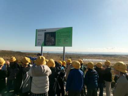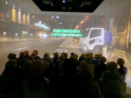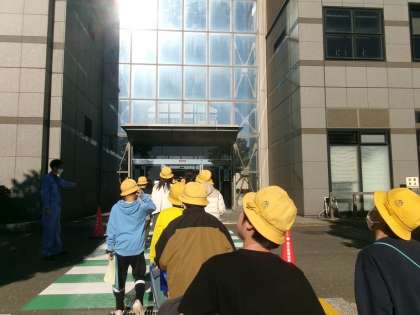 バスに解説員の方が同乗してくださり、埋め立ての様子を実際に見て回りました。高低差30mのお山の上にある展望台から、今後広がる埋め立て地の様子も教わりました。特別な許可がないと入れない施設です。勉強になりましたね。