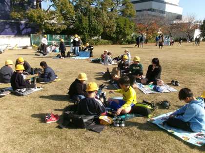 お昼ご飯です。予報では寒いとの話でしたが、陽当たりもよく暖かい中でいただけました。お弁当の準備をありがとうございました。