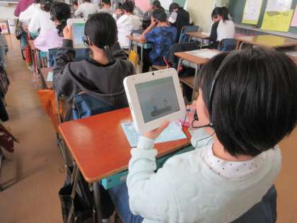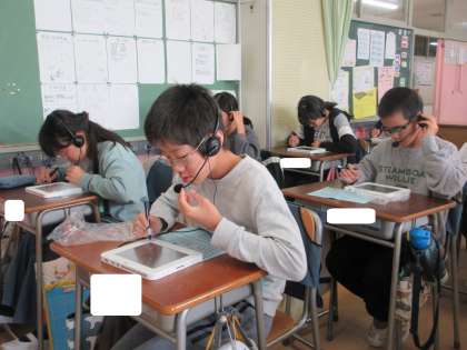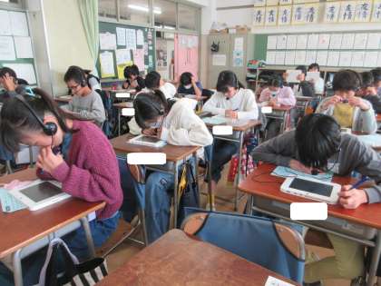 これまで学習してきたことがどの程度身に付いているか、一人一人がタブレットを活用し、イラストやアニメーションをもとに課題に取り組みました。真剣な表情で取り組んでいました。