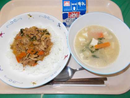 京都の「肉豆腐」は牛肉を入れることが多いようですが、今日の給食では牛肉の代わりに豚肉を使用しました。