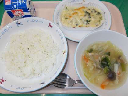 今日の献立の「ポテトとコーンのソテー」に使用されている「じゃがいも」は、地下にある茎の先端に、でんぷんなどの栄養分を蓄えられ大きくなったものです。 原産地は、南アメリカにある中央アンデス高地といわれており、一年を通じて気温が比較的低い気候を好みます。主成分がデンプンで、主食にもなる野菜として世界中で栽培されています。ビタミン類も豊富なことからフランスでは「大地のりんご」と呼ばれています。