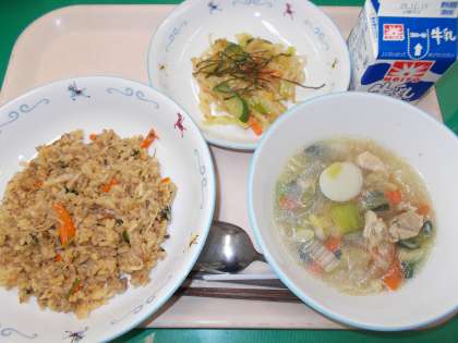今日の献立の「豚キムチ丼」には白菜キムチを使用しました。