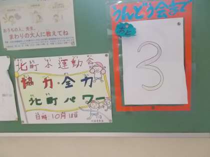 いよいよ今週末の土曜日が運動会です。カウントダウンの数字は「4」。当日はお天気に恵まれて、みんなの一番のがんばりを発揮できますように‼