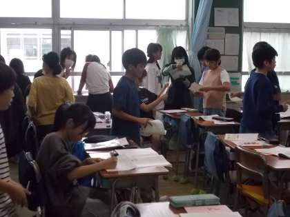 家庭科「お米と味噌汁」について、ゲストティーチャーを招いて学習しました。5大栄養素についてや、お米の成分などのお話を聞いた後に、お米が炊ける様子を観察したり、出汁入りとなしの味噌汁の味比べなどを行いました。「自分で考え、正しく選んで食べる」を実践していきたいですね。