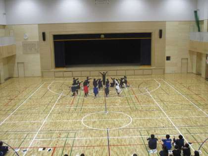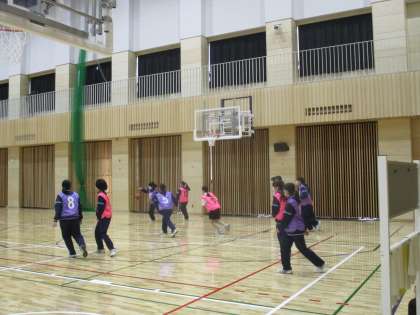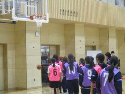 12月8日(月)、3年生の体育の授業では、『バスケットボール』を行っていました。床面から3.05メートルの高さにある真新しいバスケットリングに向け、シュートを放っていました。ちなみにバスケットリンクの高さは、プロの試合から学校の体育まで、世界中統一されています。