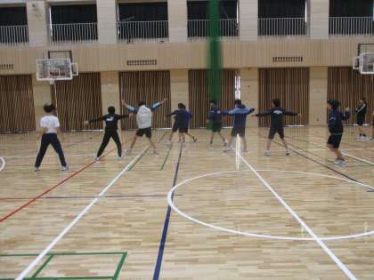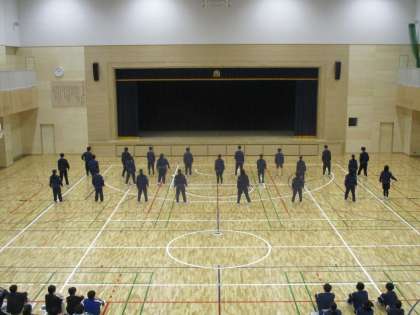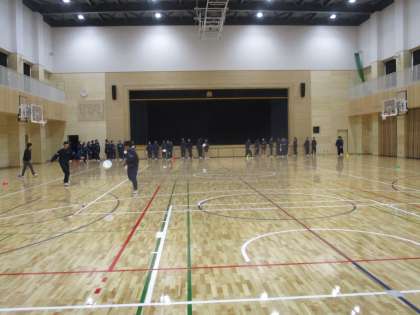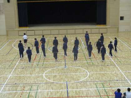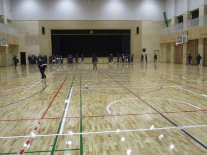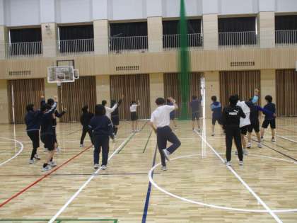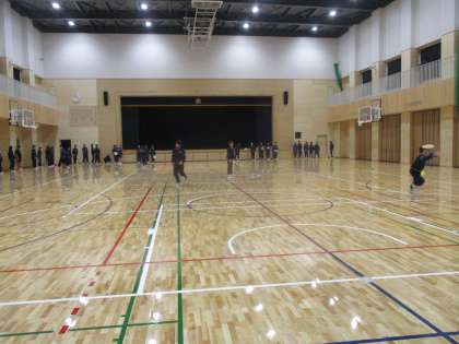 12月10日(水)、2年生の体育の授業では『アルティメット』に取り組んでいました。これまでの旧体育館と違って新体育館は広いので、十分に室内でも可能となっています。