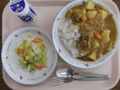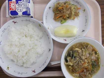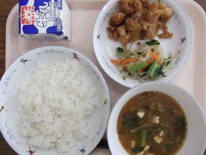 麦ご飯、四川味噌豆腐、五目野菜スープ、くだもの(みかん)、 牛乳 ※五目野菜の『五目』とは? 文字通りに5種類ぴったりである必要はなく、「多くの種類」や 「たくさん」といった意味合いがあります。そのため、実際の 五目野菜炒めや煮物などには、彩りや栄養バランスを考慮して、 5種類を超える様々な具材が使われることが一般的となっています。 11月28日(金)給食