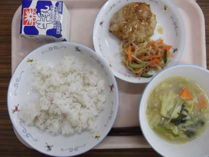 麦ご飯、キャベツバーグ、もやしの和え物、野菜の洋風みそ汁、 牛乳 ※『もやし』の栄養価は? もやしは低カロリーながら、ビタミンC、B群(B1, B2)、 カリウム、カルシウム、食物繊維、アスパラギン酸などが 豊富で、疲労回復や美容、生活習慣病予防に役立つと いわれています。 12月10日(水)給食