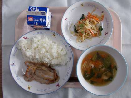 ・豚肉の生姜焼き ・みぞれ汁 ・和風サラダ ・牛乳 12月1日(月)給食