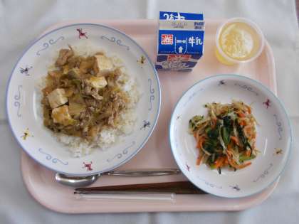 ・しそひじきふりかけ ・炒り豆腐 ・和風サラダ ・牛乳 11月11日(火)給食