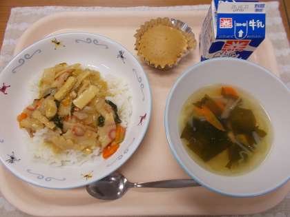 ![]() ![]() 10/15 2年 運動会練習![]() ![]() ![]() ![]() ![]() ![]() 10/15 5年 運動会練習![]() ![]() ![]() ![]() ![]() ![]() 令和7年10月14日(火)![]() ![]() 【コメント】 今日のきな粉揚げパンは「黒糖パン」を使って作りました。パンにも甘みがあるので、より一層おいしく食べられます。どのクラスでも人気で、おかわりじゃんけんで盛り上がっていました。 【主な食材の産地】 きなこ:国産 鶏ひき肉:宮崎 大豆(水煮):北海道 しょうが:高知 ねぎ:青森 たまねぎ:北海道 にんじん:北海道 はくさい:長野 こまつな:埼玉 キャベツ:群馬 きゅうり:埼玉 10/14 運動会カウントダウン![]() ![]() ![]() ![]() 10/14 おいしい顔![]() ![]() ![]() ![]() 10/14 6年 理科![]() ![]() ![]() ![]() ![]() ![]() 令和7年10月10日(金)![]() ![]() ![]() ![]() 【コメント】 10月10日は「目の愛護デー」です。目の働きを助けてくれる代表的な栄養素がビタミンAです。にんじんは、体内でビタミンAに変換されるβ-カロテンを多く含む緑黄色野菜です。今日の給食では、にんじんをたくさん使っています。「キャロットゼリー」は、にんじんをオレンジジュースと一緒にミキサーにかけたものをゼリーにしています。普段、にんじんが苦手な児童も今日のキャロットゼリーは食べやすいようでした。 【主な食材の産地】 米:岩手 豚肉:茨城 鶏肉:宮崎 しょうが:高知 にんにく:青森 干ししいたけ:大分・熊本・宮崎・鹿児島 にんじん:北海道 たまねぎ:北海道 たけのこ:福岡・熊本・宮崎・鹿児島 チンゲンサイ:静岡 しめじ:長野 はくさい:長野 ねぎ:青森 こまつな:埼玉 10/10 1年 体育![]() ![]() ![]() ![]() ![]() ![]() 10/10 先生も学ぶ![]() ![]() ![]() ![]() 10/10 6年 国語![]() ![]() ![]() ![]() 10/9 6年 国語![]() ![]() ![]() ![]() |