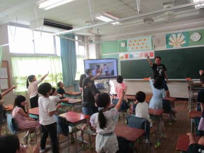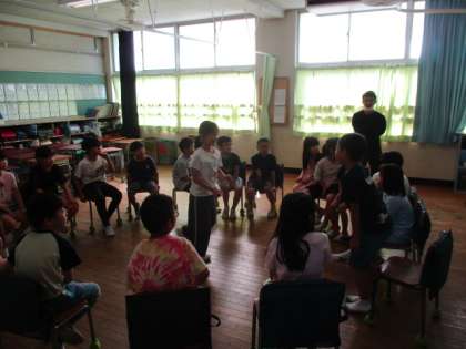 英語の歌に合わせてダンスや英語でのじゃんけん、自分の誕生月の言い方をALTと確認してからの「誕生日バスケット」など、みんなで楽しく英語に親しみました。