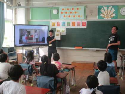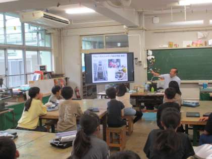 5年生では、図工と総合的な学習の時間を活用しながら、映像(アニメ)作成についての体験学習を進めています。今日はプロのアニメーターの方をお招きし、アニメに関するクイズを楽しんだりアニメができるまでの工程を学んだりしたあと、実際にループアニメを作るための作画に取り組みました。今後はグループごとに絵コンテを作成し、アニメ作成に取り組んでいきます。