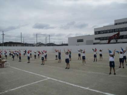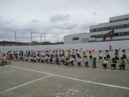 1時間目に運動会リハーサルとして、開会式から準備運動、応援合戦までの流れと整理運動から閉会式までの流れを確認しました。応援団長による選手宣誓や応援合戦など、今までの練習の中で一番声が出ていました。当日に向けての気持ちがどんどん増してきているようです。