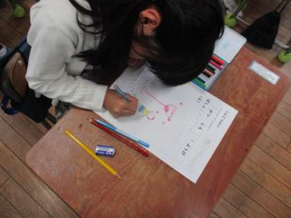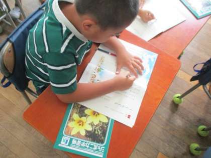 1年生は、運動会で楽しかったことや頑張ったことなどを文と絵にして振り返っていました。自分なりの一生懸命で取り組んだ運動会、一人一人が感じたことをしっかりと表現していました。
