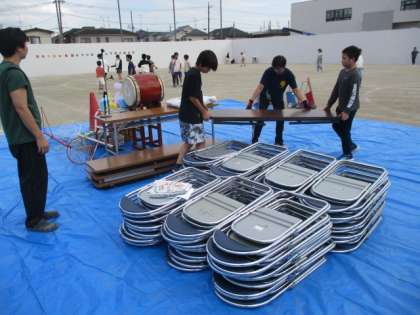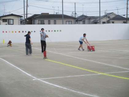 運動会の準備のため、高学年が必要な用具やいすなどを校舎から仮校庭まで運んでくれたり、表示を付けたりしてくれました。てきぱきと行動する姿は、さすが高学年です。とても頼りになります。