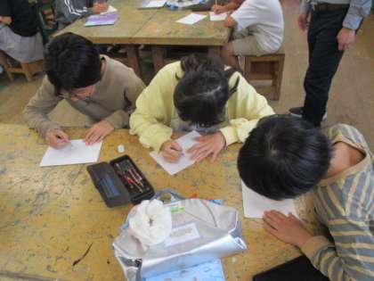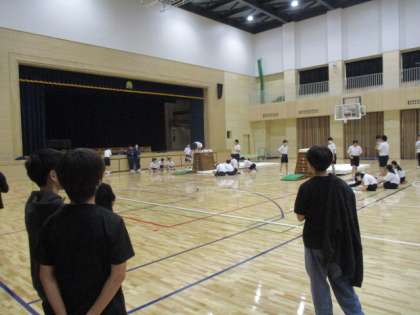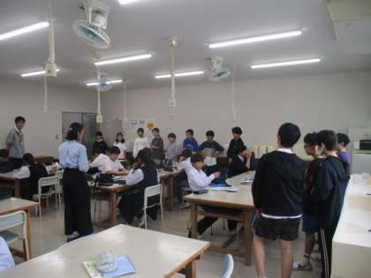 小中一貫教育の取組として、6年生は旭丘中学校の授業の様子を見学しました。中学生がどのような態度で授業に臨んでいるかを見られたことは刺激になったようで、中学校の教員にワークシートの内容について積極的に質問している様子も見られました。