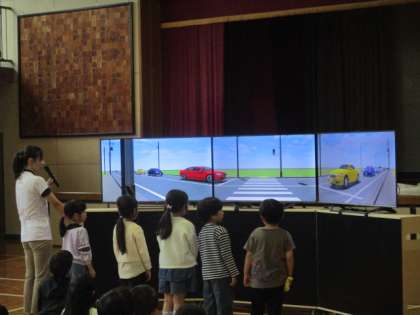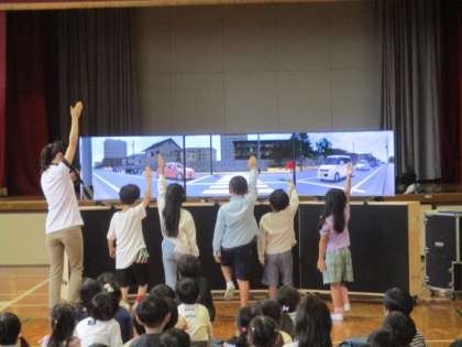シミュレーターを使った道路の横断体験でも、教えてもらったことを意識しながら取り組むことができていた1年生。日頃からの交通安全を更に意識してもらえればと思います。