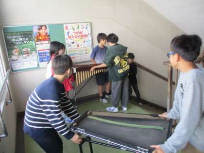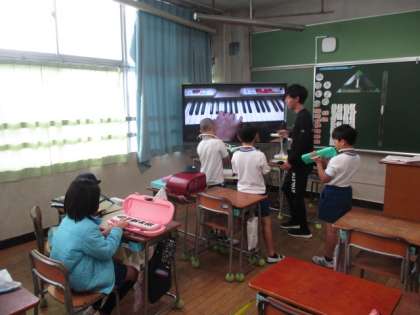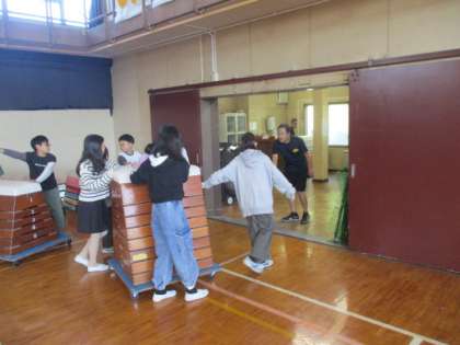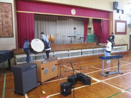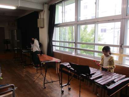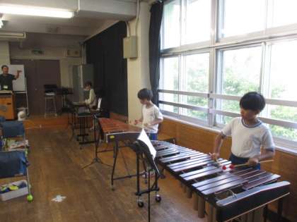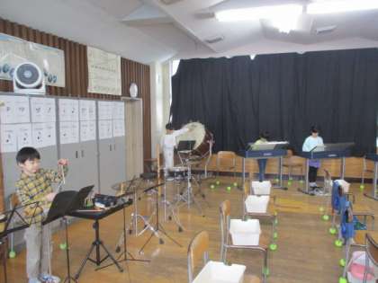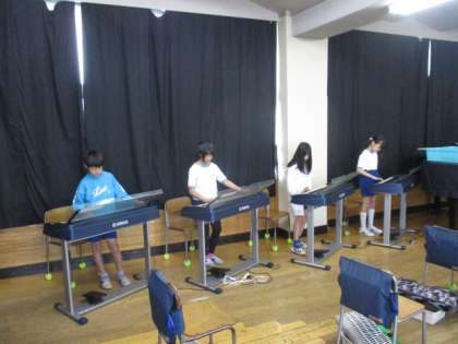 6年生の仕事は、音楽室から体育館への楽器の運び入れになります。3階からの移動はかなりの労力ですが、協力しながらどんどんと運んでくれました。 音楽会に向けて その1(5年生)