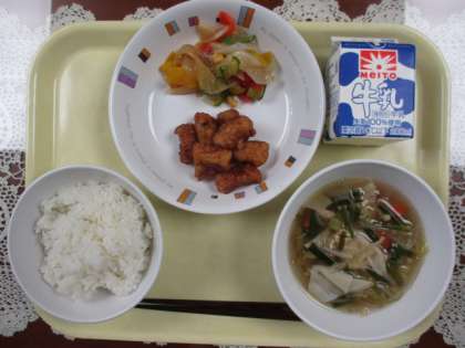きこえの教室の子たちが司会進行や会の挨拶を行い、お互いが用意したゲームで楽しく遊んだり、一緒に手話ダンスを踊ったりしながら、よりよい交流ができました。 11月6日(木)の給食