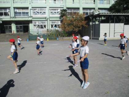 高学年による和太鼓演奏や、学級全員での合奏など、みんなで演奏する音がしっかりとそろうように頑張って練習に取り組んでいました。 多様な動きを身に付けよう(2年生)