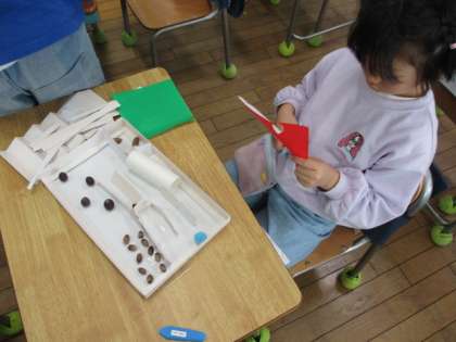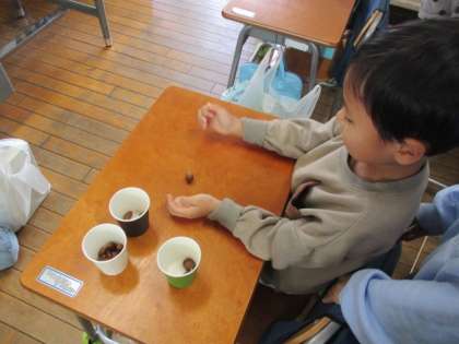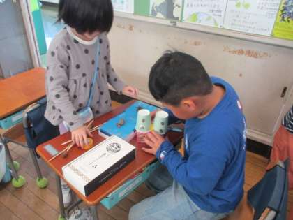 先日秋探しで集めてきたドングリなどを使って、おもちゃ作りに取り組んでいました。ドングリごまやドングリ迷路、ドングリを使った楽器など、どれも楽しそうなものばかりです。 音楽会に向けた練習(あさひ学級)