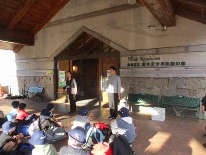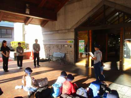 宿泊するベルデ軽井沢に到着しました。ベルデの玄関にて開校式を行い、お世話になるベルデの職員の方からお話を聞き、代表児童が職員の方々に挨拶をしました。これから3日間、みんなで協力して生活していきましょう。