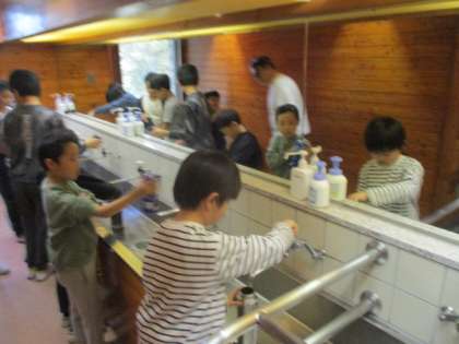 自分たちの部屋に入った後は、荷物整理をしたり、水筒の中を洗ったり、入用準備をしたりしています。てきぱきと行動している子が多くいます。