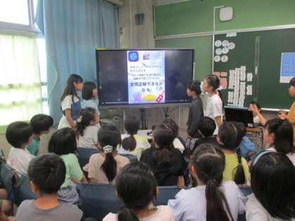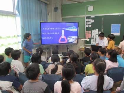今まで総合の時間でユニバーサルデザインについて調べ、Canvaを使ってまとめたことを3年生に発表していました。相手に伝わりやすいように工夫しながら発表することを頑張っていました。