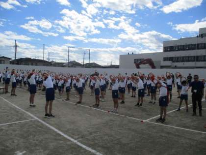号令に合わせた動作の確認、準備運動の練習、開会式の流れの確認、応援合戦の練習などを行いました。運動会当日に向けて全員が一堂に会し、一緒に練習をしていくことで、気持ちが高まってきているようで、応援合戦の声がとてもよく出ていました。当日も楽しみです。